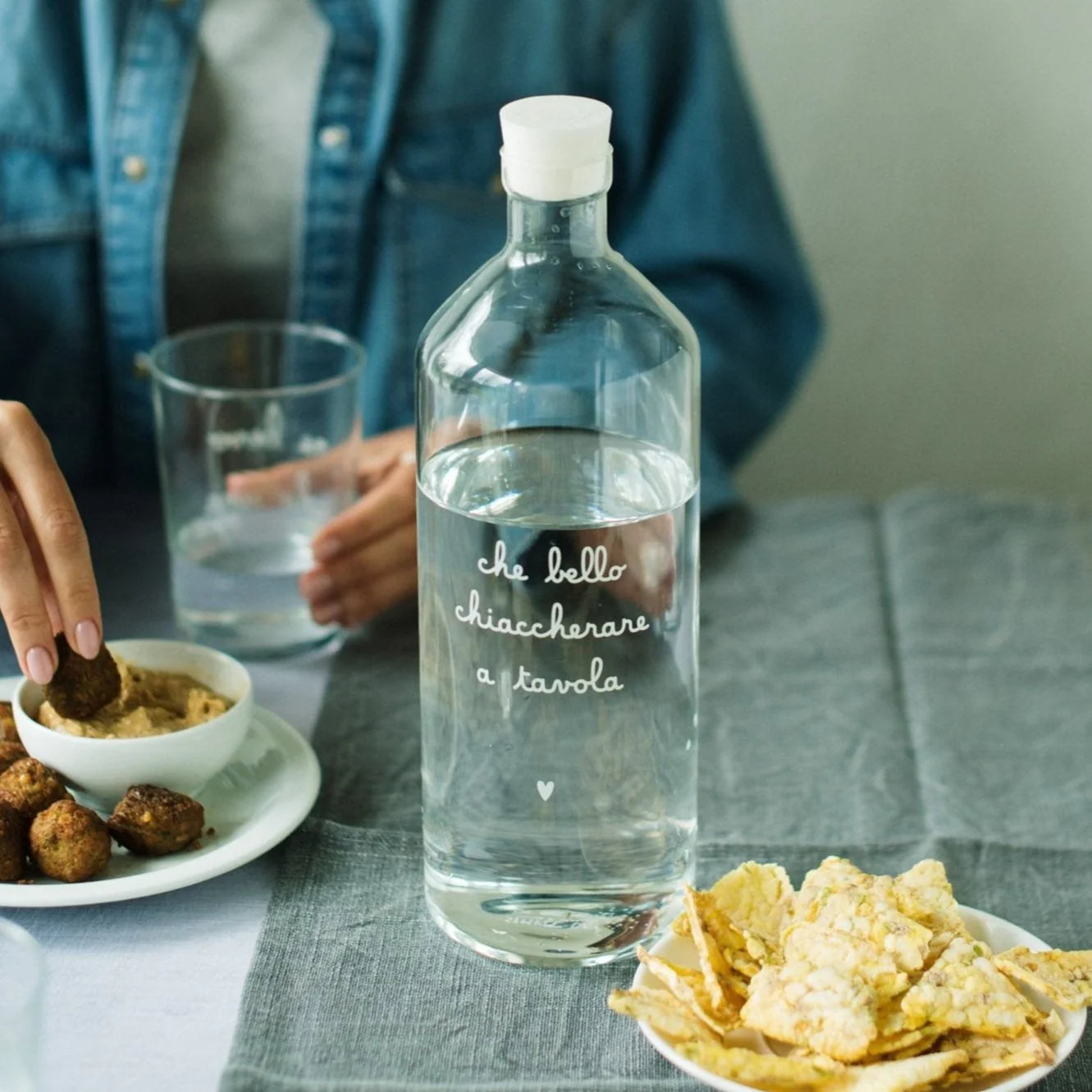 Bottiglia in vetro con decoro Che bello chiacchierare a tavola