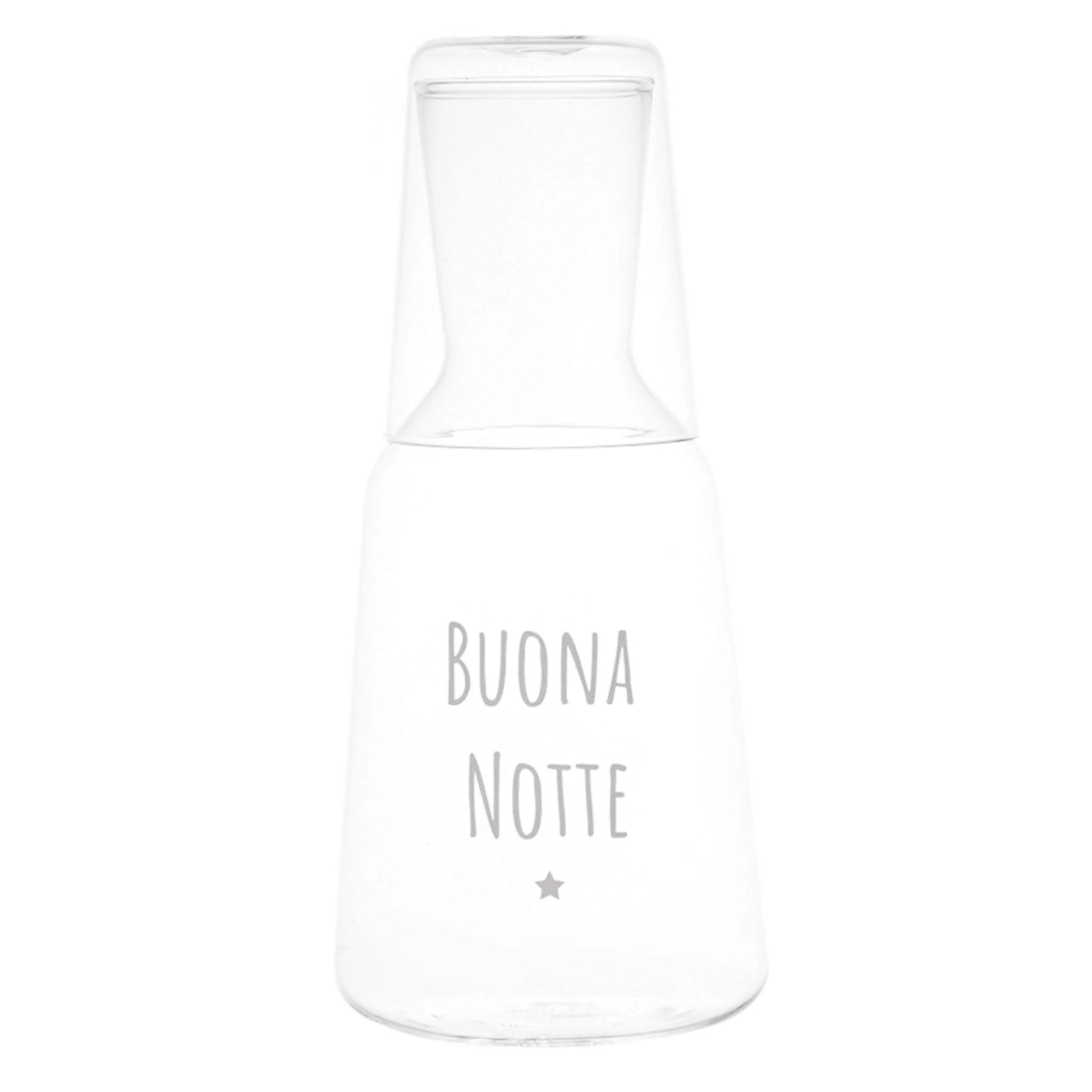 Bottiglia con bicchiere in vetro borosilicato con decoro Buona Notte