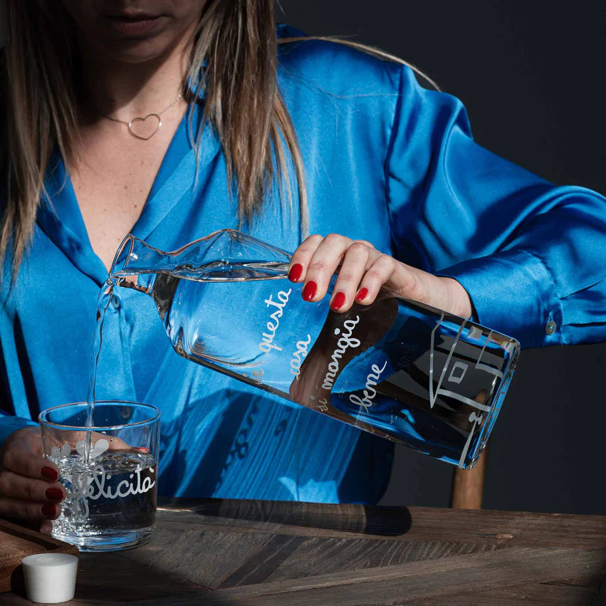 Bottiglia in vetro borosilicato con decoro In questa casa si mangia bene