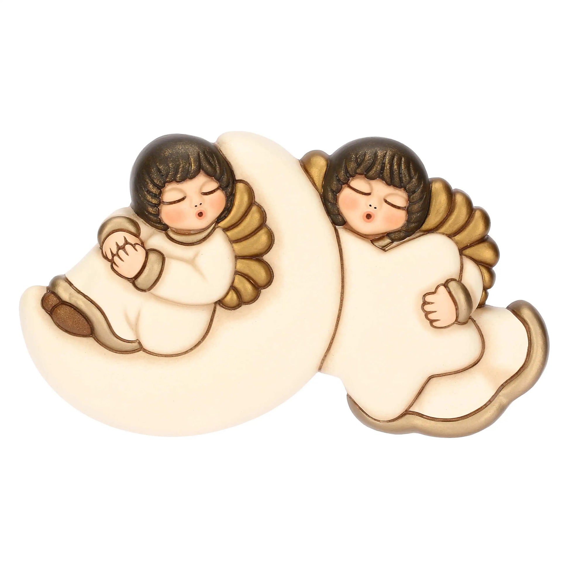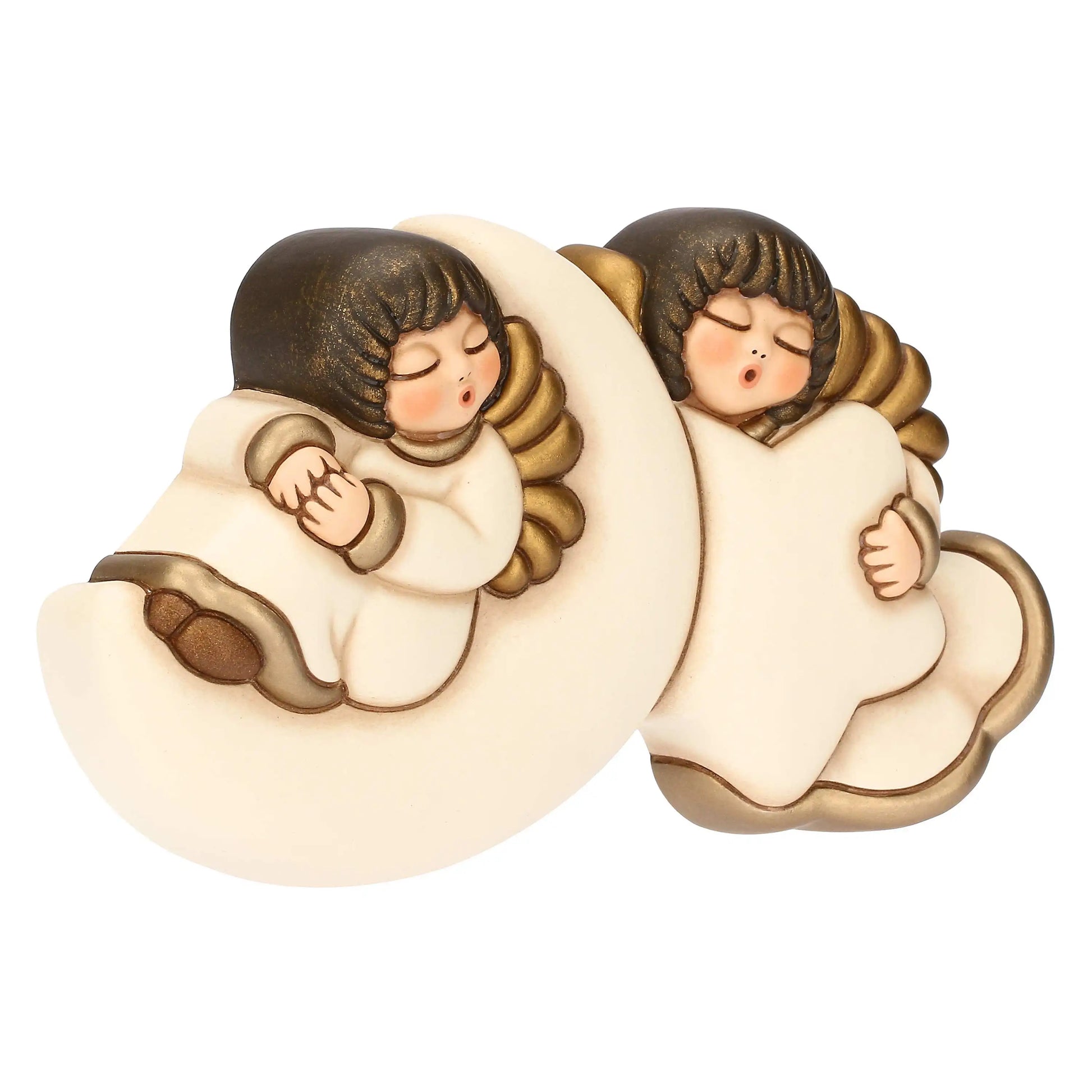 Coppia angeli da parete con luna e stella in ceramica