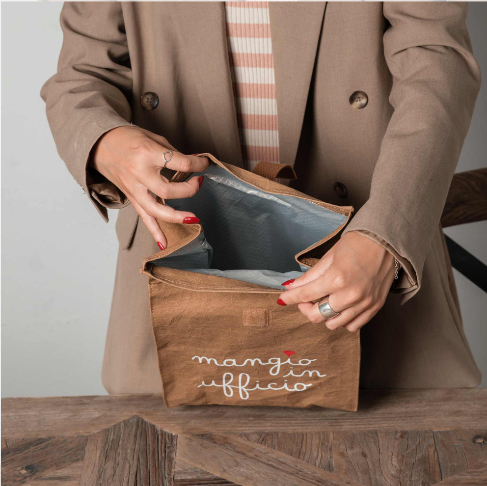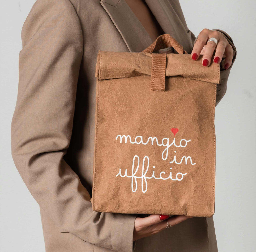 Porta-pranzo in fibra di cellulosa decoro Mangio in ufficio dim. 22 x 15 x h36 cm