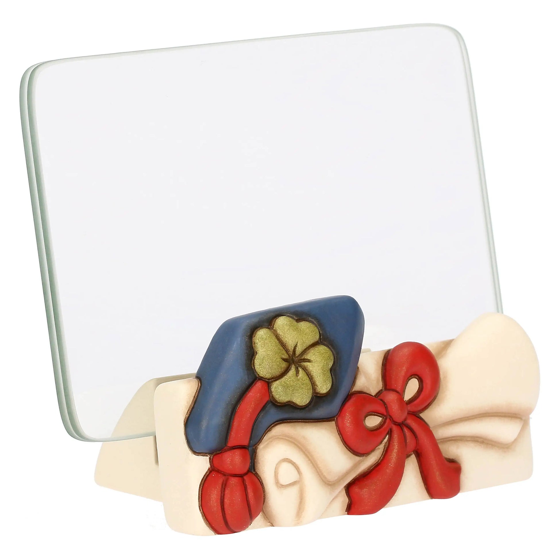Rendi indimenticabile il giorno della laurea con il Portafoto Laurea in ceramica e vetro, un accessorio raffinato pensato per custodire la foto del momento più importante. Realizzato con una combinazione elegante di ceramica decorata e vetro trasparente, questo portafoto unisce stile, qualità e significato, diventando un prezioso ricordo da conservare per sempre.La decorazione in ceramica, curata nei dettagli e caratterizzata dai simboli tradizionali della laurea, dona calore e personalità all’oggetto in perfetto stile THUN!