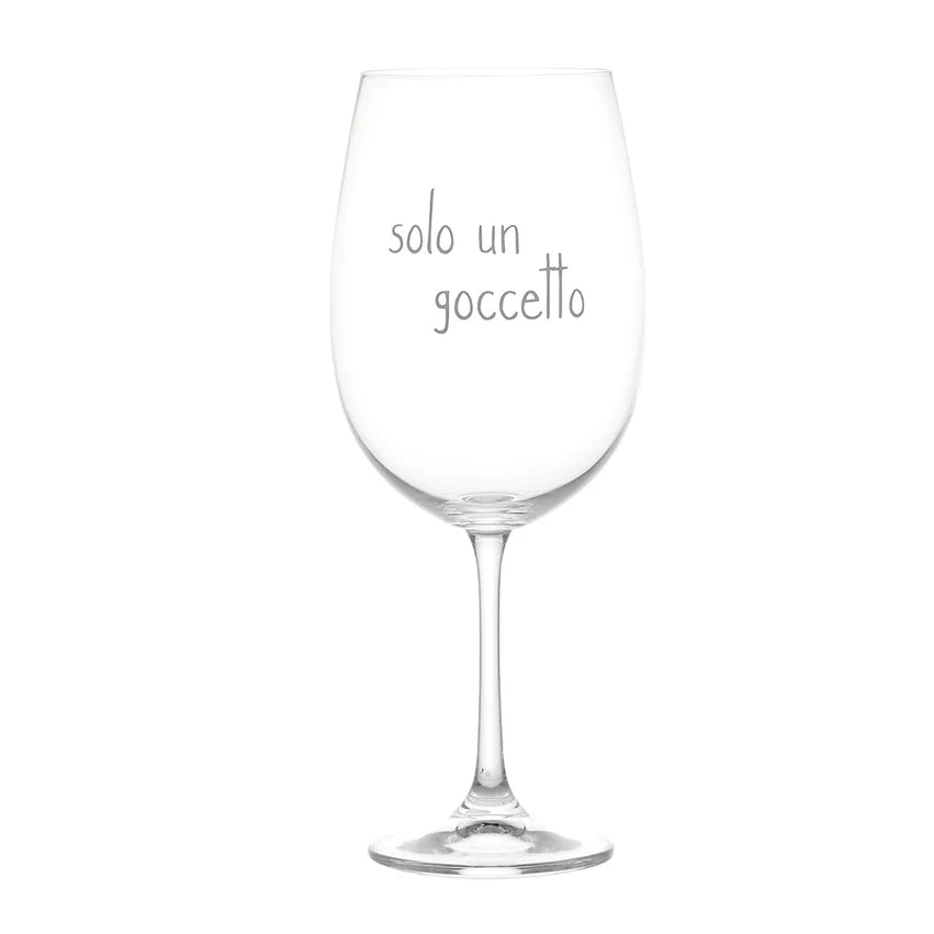 Godetevi ogni sorso con questo elegante set di 2 calici da vino con disegno decorativo "Solo un goccetto". La sua estetica unica, la scritta in bianco e la qualità del vetro, daranno un tocco di raffinatezza ad ogni sorso.