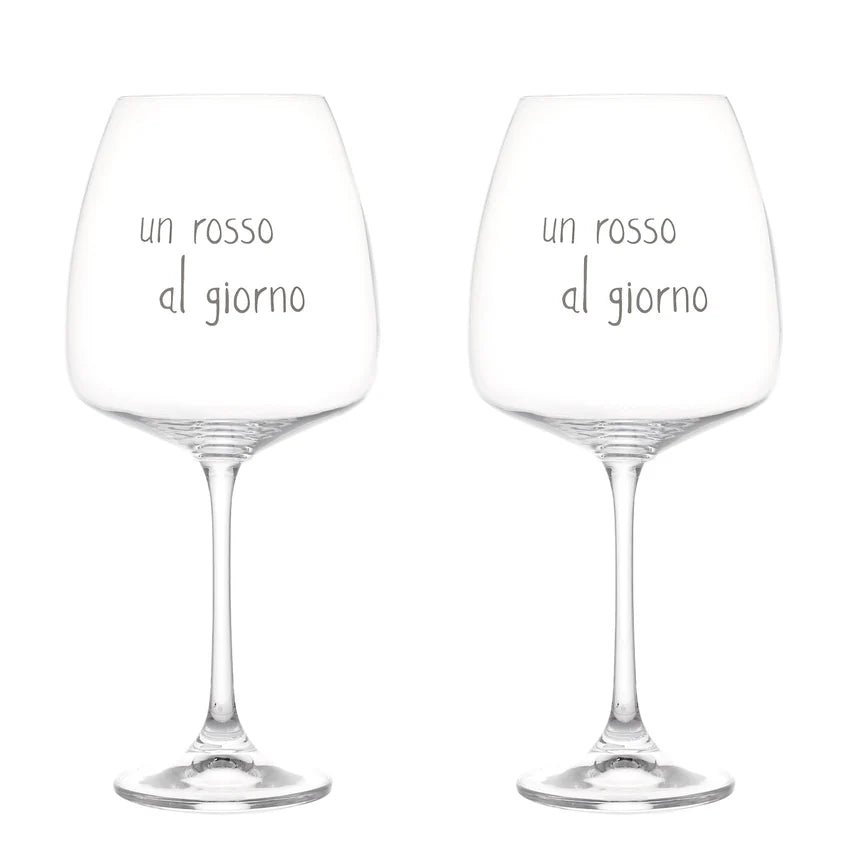 Godetevi ogni sorso con questo elegante set di 2 calici da vino con disegno decorativo "Un rosso al giorno". La sua estetica unica, la scritta in bianco e la qualità del vetro, daranno un tocco di raffinatezza ad ogni sorso.